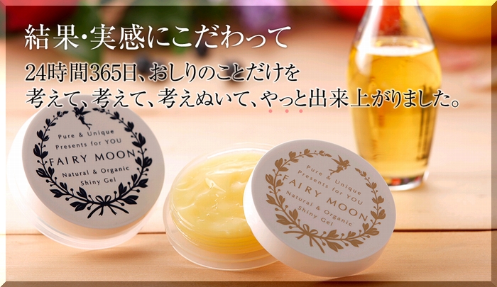 フェアリームーンはお尻のためだけに開発された、お尻専用の美容ジェルです。お尻のブツブツ、黒ずみ、ざらざらに効果あり。